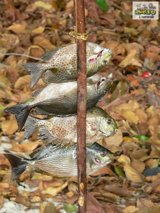 По прежнему мы ездили на остров Ко Аданг, который находится в нескольких километрах от Ко Липе на лодке и жарили пойманную рыбу на пляже: