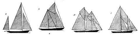 Двухмачтовые яхты отличаются огромным разнообразием парусного вооружения. Приведем лишь несколько из них.