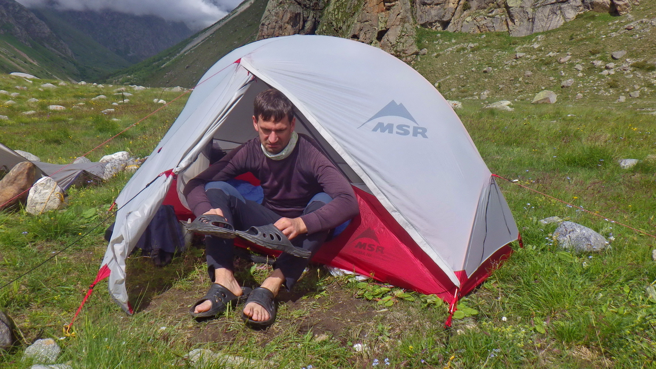 Ещё в отличие от палаток от Али-Бабы, линейные размеры внутреннего пространства рассчитаны на взрослых европеоидов. Китайский же ультралайт обычно предлагает узкие и короткие гробики для захоронения сидя. У MSR всё не так: