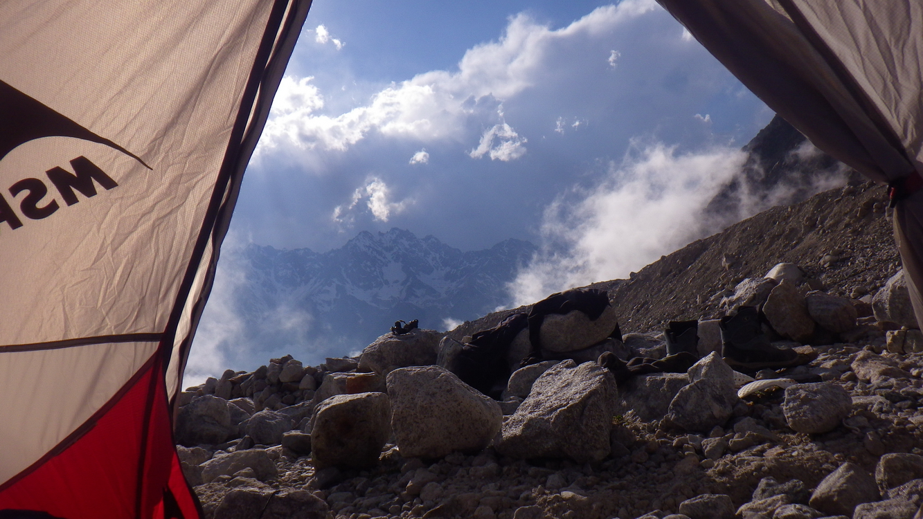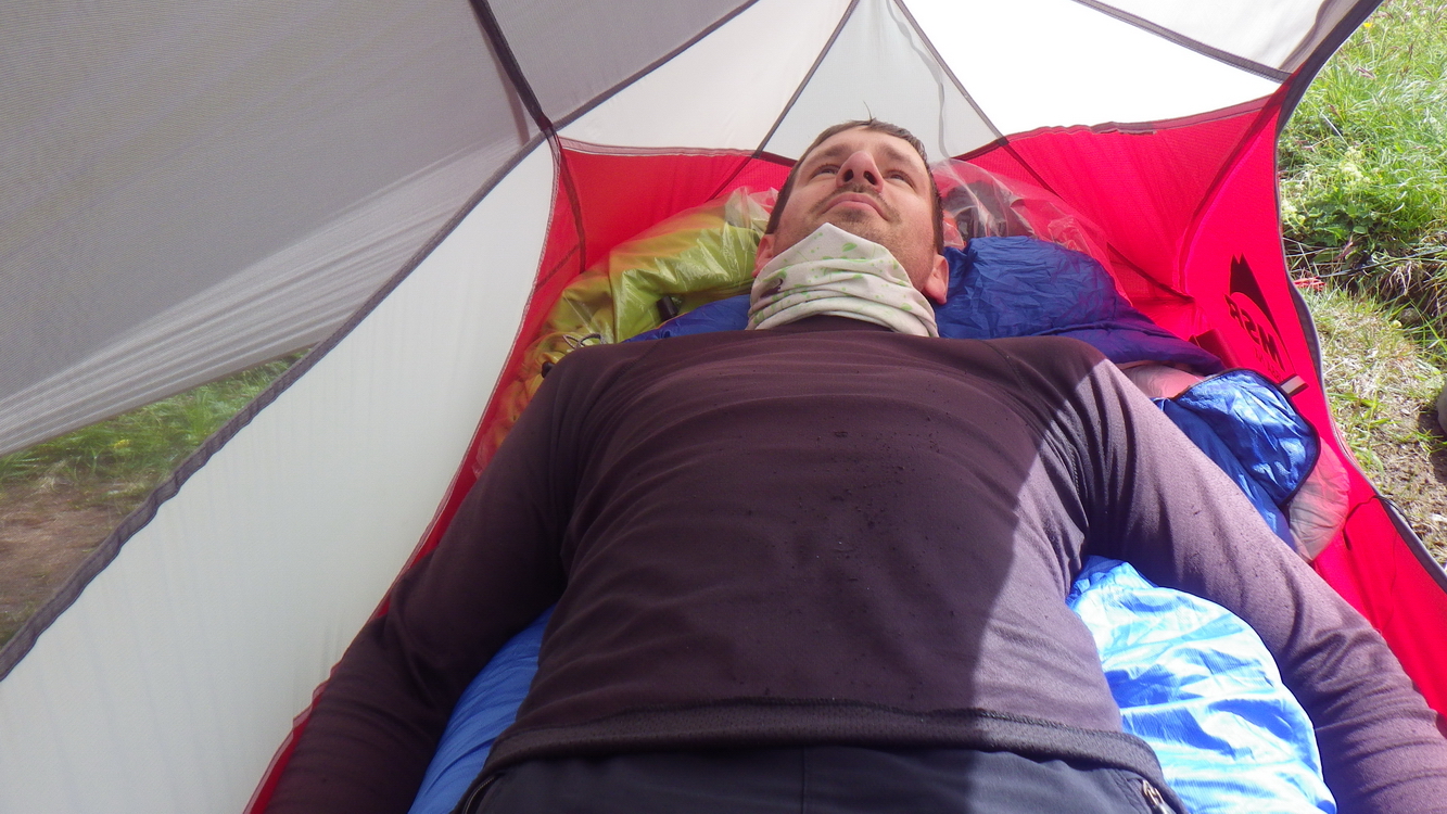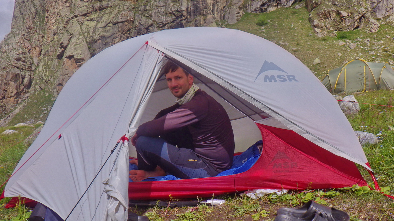 Затем палатка . Кроме поедания хычанов планировалось испытание палатки при повышенной ветровой нагрузке и на снегу. Но, не смотря на обещания гайдбука, погода сплошь благоприятствовала восхождениям, и результаты испытаний оказались невнятными.
